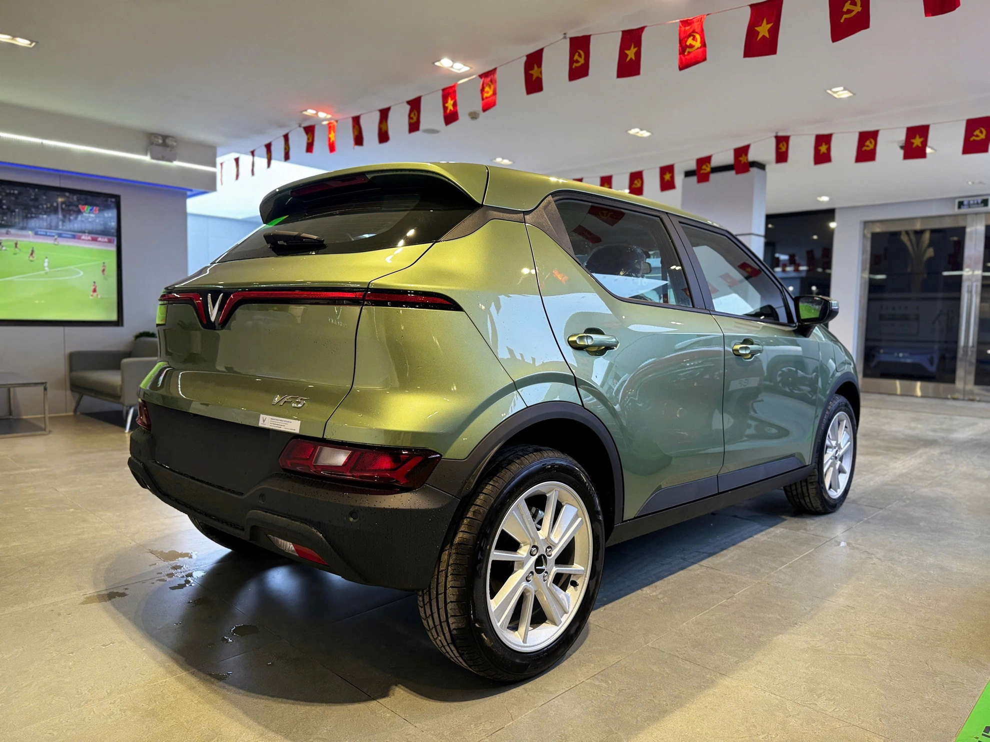 Cụm đèn xi-nhan, đèn lùi và đèn sau màu đỏ đặt thấp xuống dưới. Cánh gió, ăng-ten vây cá cùng màu nóc xe. Cản sau thiết kế khá hầm hố với màu đen bóng, càng nhấn mạnh vẻ khỏe khoắn trên VF5